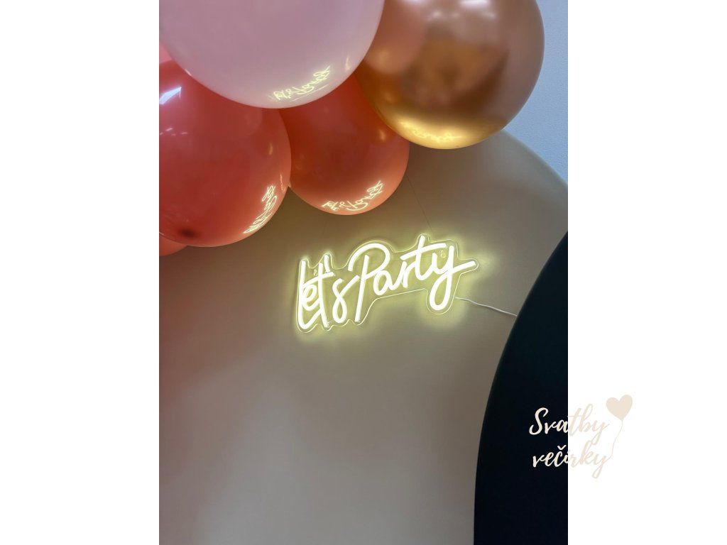 Oživte svou svatbu, oslavu nebo firemní večírek stylovým neonovým nápisem Let´s party, který dodá prostoru moderní a nezapomenutelnou atmosféru. LED neonové dekorace jsou oblíbeným prvkem svatební výzdoby a perfektně se hodí do fotokoutku, za svatební stůl nebo na taneční parket.